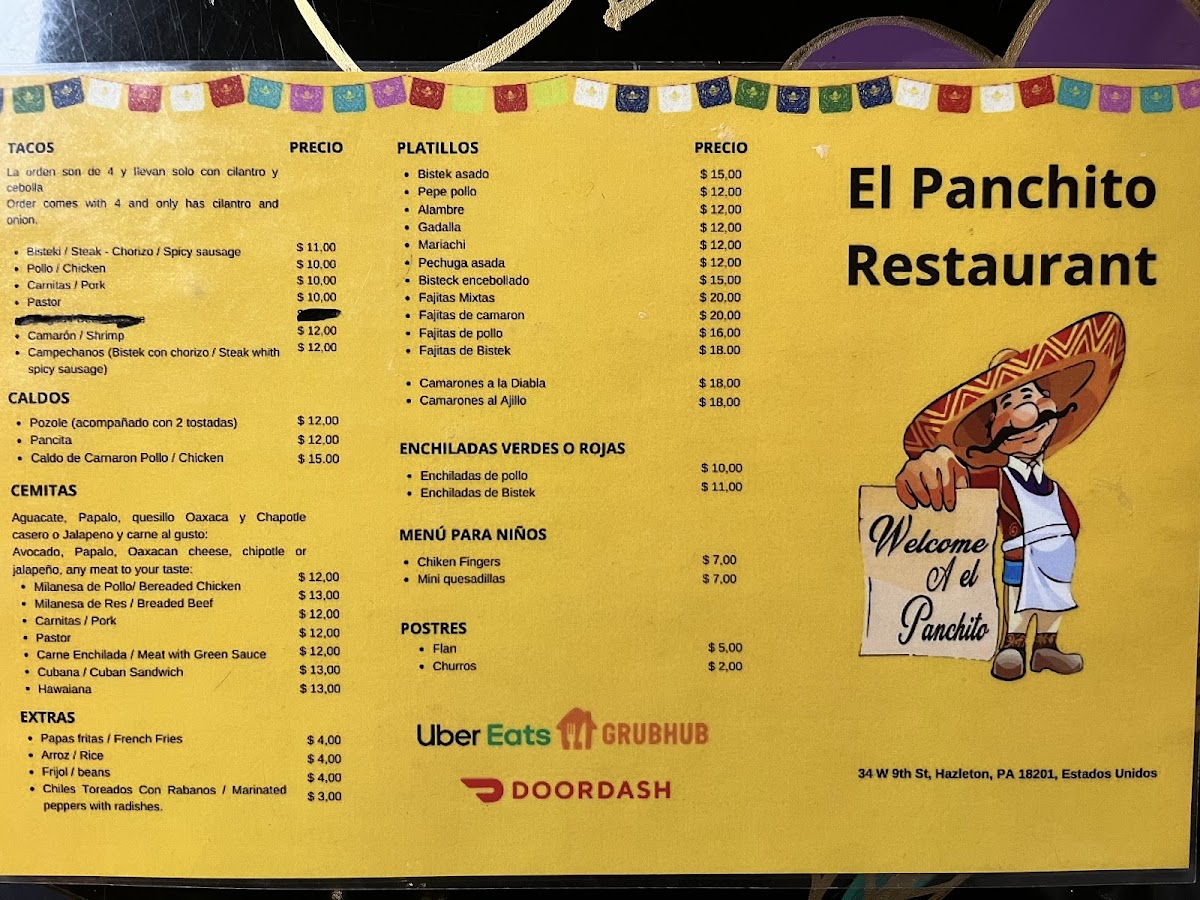 Welcome to Restaurant El Panchito, a hidden gem located in Hazleton, PA, where authentic Mexican flavors come alive. The menu boasts a delightful array of traditional dishes that capture the essence of Mexican cuisine.